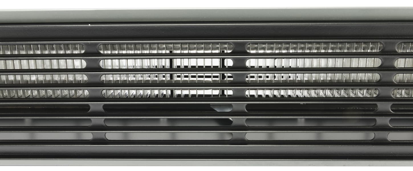 В правой части обогревателя находится контейнер-парогенератор. А заглянув внутрь сквозь решетку, мы можем увидеть множество алюминиевых нагревательных пластин, расстояние между которыми составляет 1,5 мм.