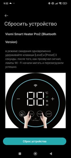Отметим, что яркость дисплея будет автоматически снижена через 3 минуты после последнего взаимодействия пользователя с обогревателем.