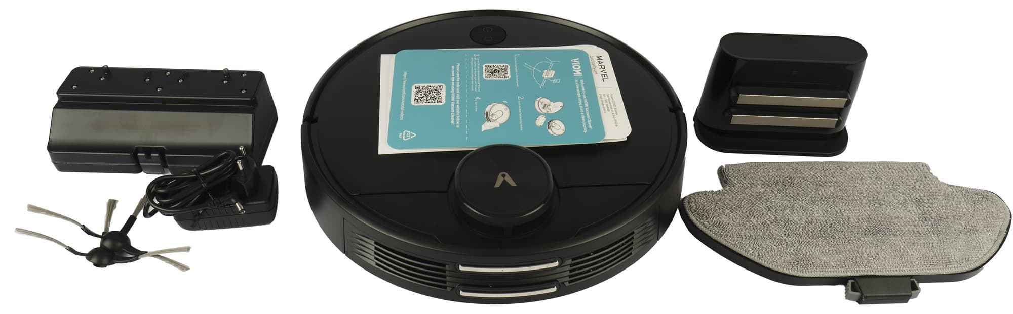 В комплект устройства входят две боковых щетки — основная и запасная, а вот дополнительных салфеток в коробке нет.