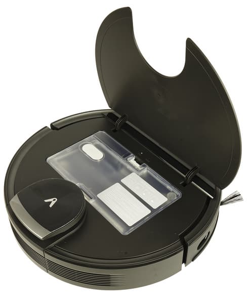 Отсек контейнеров для сухой и влажной уборки располагается на верхней стороне корпуса, под пластиковой крышкой.