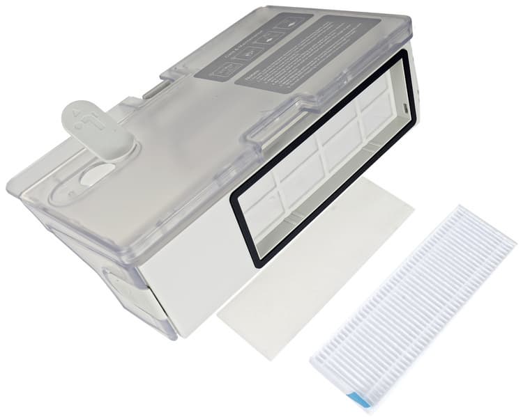 Отсек для сухого мусора в модуле «2 в 1» невелик и опустошать его приходится довольно часто. Специализированной емкости для сухой уборки у этой модели нет, а жаль: по нашему опыту, использовать робот-пылесос в автоматическом режиме удобнее именно для нее.