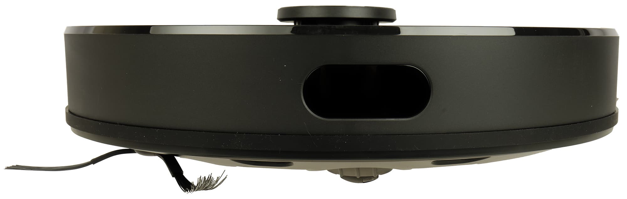 По периметру передней стороны корпуса можно рассмотреть четыре пары оптических датчиков поверхности: их задача — защитить устройство от падения с высоты при потере контакта с полом (к примеру, на верхней ступени лестницы). В массивной задней части — три отверстия, через которые в режиме влажной уборки подается вода.