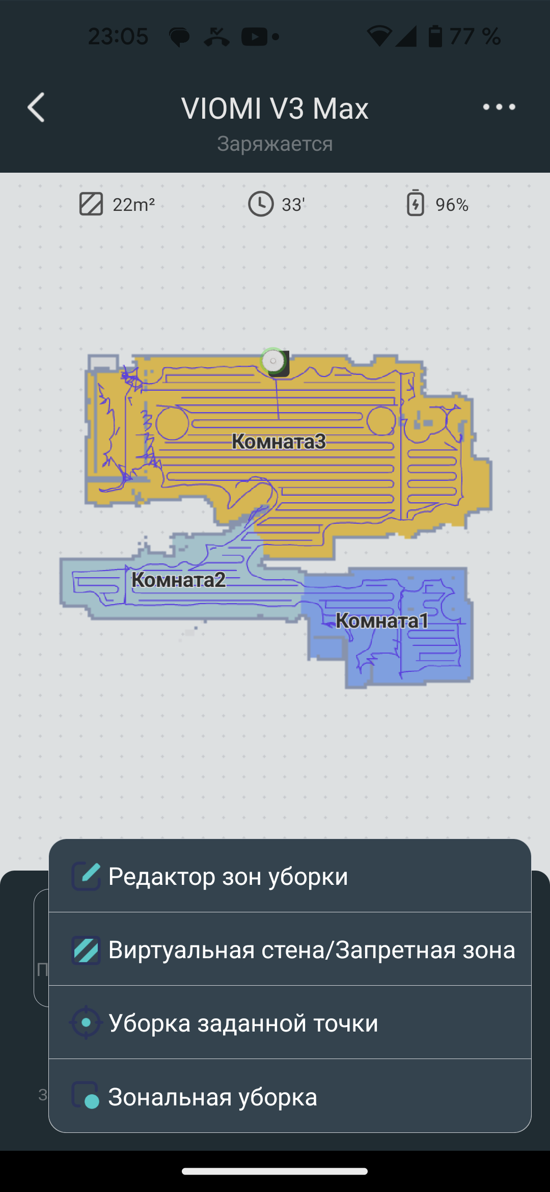 Робот-пылесос Viomi V3 Max понравился нам отличным качеством уборки, которая обеспечивается точной и быстрой навигацией. Благодаря лазерному сенсору прибор хорошо видит границы помещения и предметы мебели и строит эффективный и быстрый маршрут движения. Емкий аккумулятор обеспечивает ему весьма продолжительное время автономной работы, что делает его пригодным для средних и больших помещений.