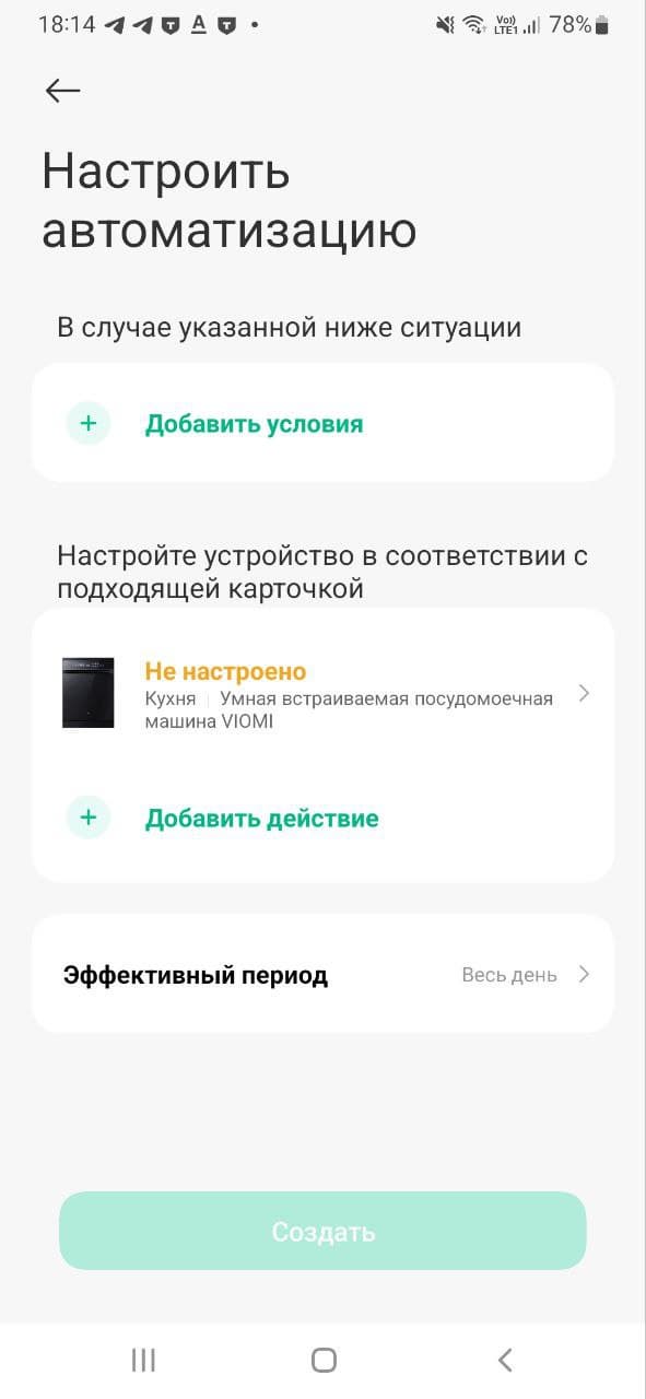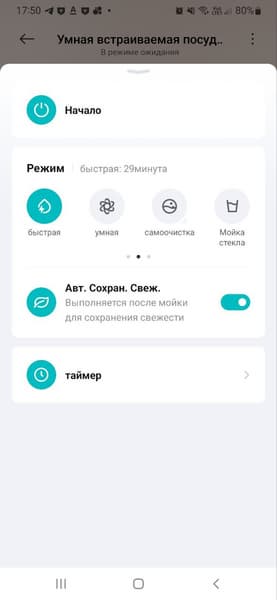 Из дополнительных опций в настройках можно задать сценарии для автоматического запуска посуды на определенное время по дням недели или с ежедневным повтором.
