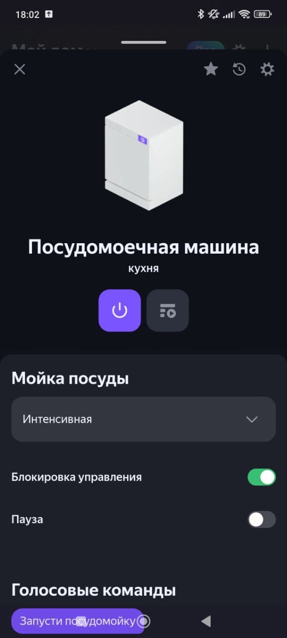Посудомойкой можно управлять с помощью голосового помощника Алисы. Для этого нужно требуется «подружить» прибор с системой умного дома «Яндекса». Процесс добавления устройства несложен: в главном окне «Умного дома» выбираем пункт «Устройства умного дома», после чего выбираем из списка различных производителей Viomi и нажимаем кнопку «Привязать к Яндексу». Дальше происходит авторизация учетной записи Xiaomi Home, после чего посудомойка появляется в основном меню Алисы.