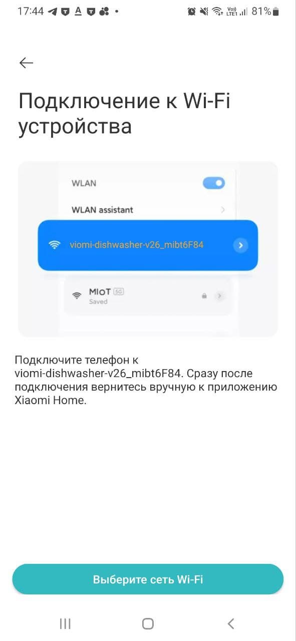 Есть момент, который не всегда очевиден, во время настройки стоит помнить, что посудомойка работает только с сетями 2,4 ГГц и хотя впоследствии вам понадобится только Wi-Fi, во время процедуры первоначального сопряжения на смартфоне должны быть включены и Wi-Fi, и Bluetooth.