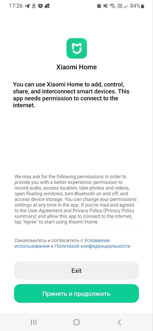 Сообщаем приложению, что ознакомились с Пользовательским соглашением и Политикой конфиденциальности и можем приступать к работе.
