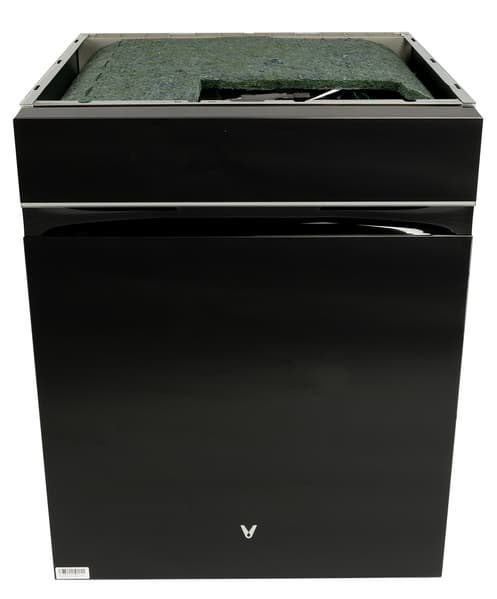 Лицевая сторона с лаконичным дизайном выполнена из умеренно глянцевого черного стекла. Из декоративных элементов на ней выделяются только серебристая полоска над дверцей и логотип бренда в самом низу.