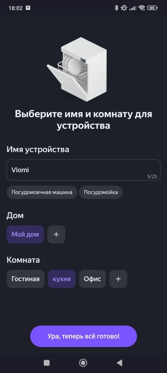 В финале процедуры будет предложено выбрать помещение, задать имя устройству и пригласить к управлению машиной кого-то из членов семьи. Этими опциями можно воспользоваться и позже.