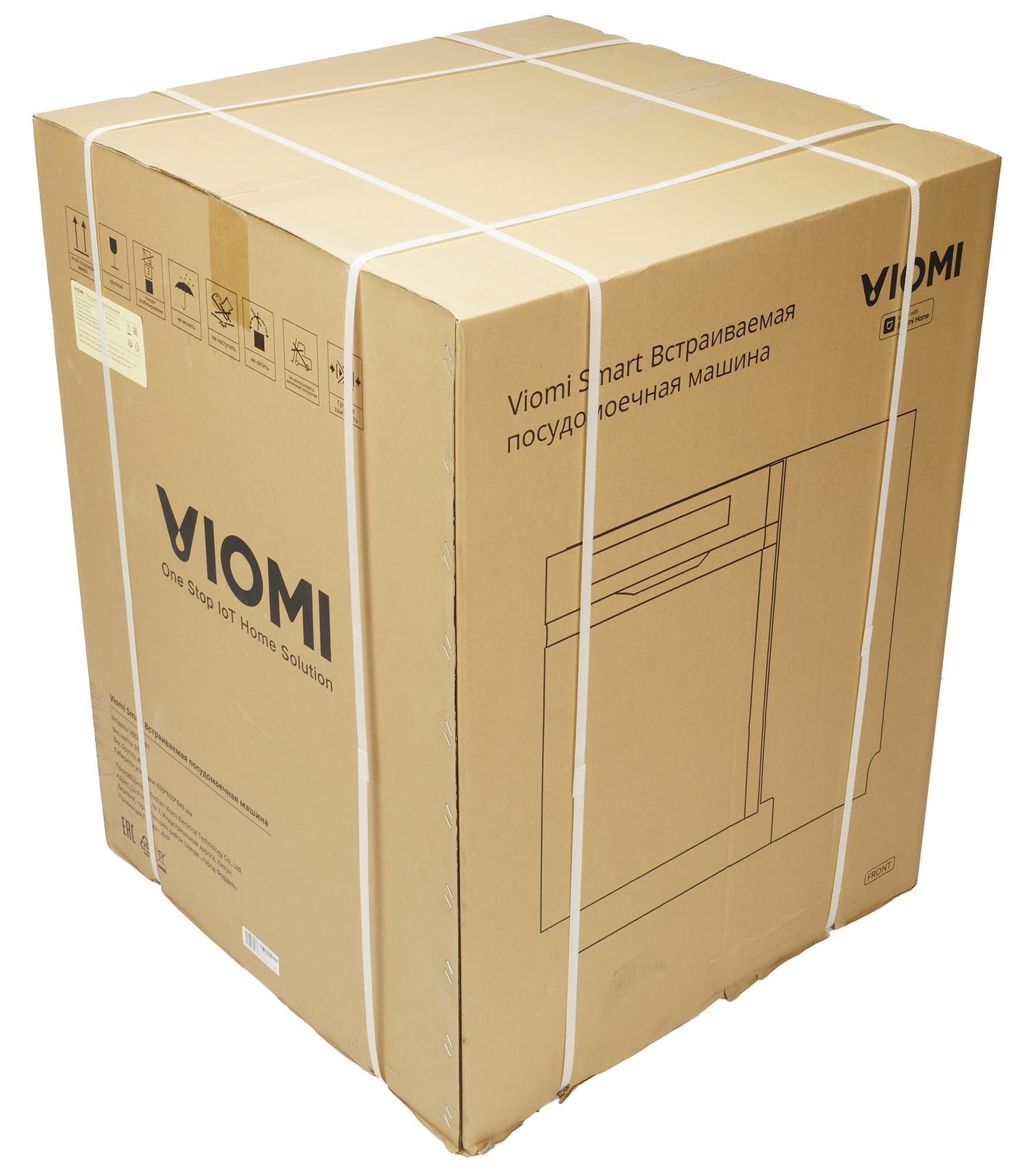 Viomi VBDW161 поставляется в коробке из прочного коричневого картона, стянутой пластиковой лентой. На гранях упаковки размещены логотип компании, схематическое изображение устройства, информация о модели, а также ряд транспортировочных значков.