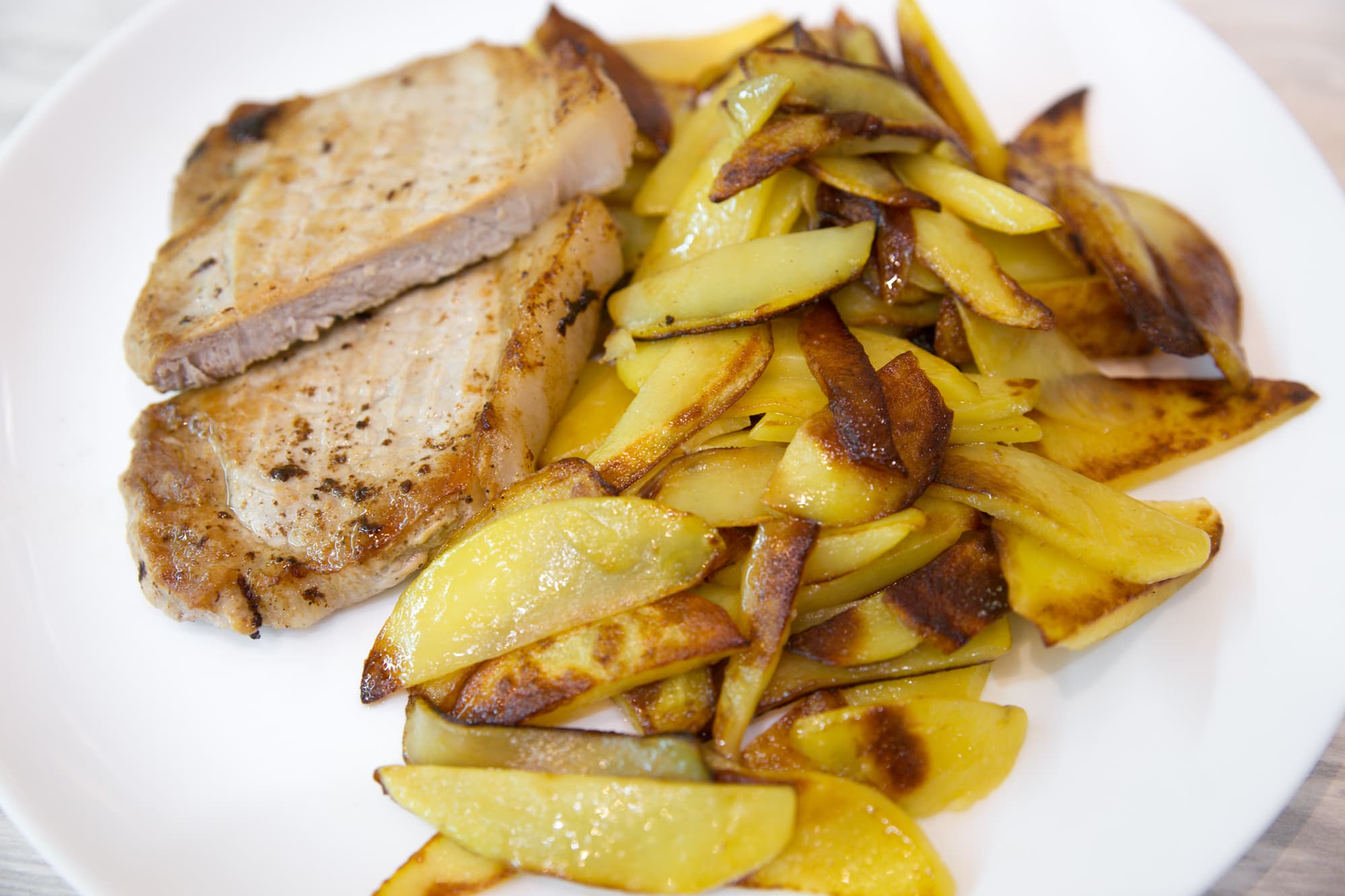 - Жареный картофель со свининой