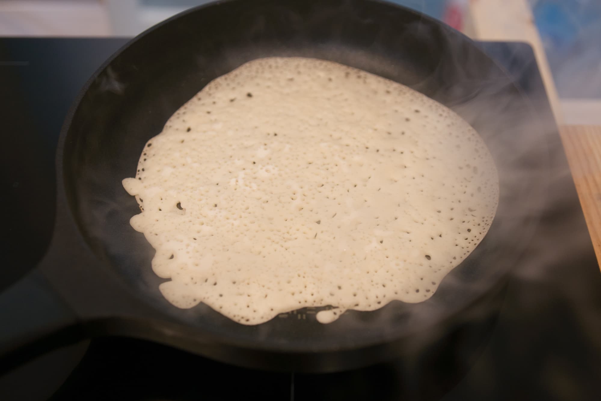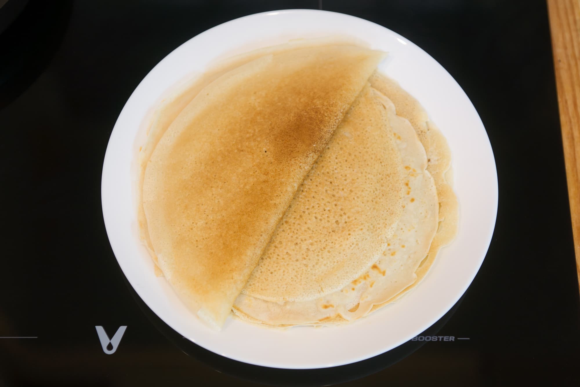 Для сравнения мы жарили блины на трех конфорках: на мощных дальней правой и ближней левой и на ближней правой, что послабее.