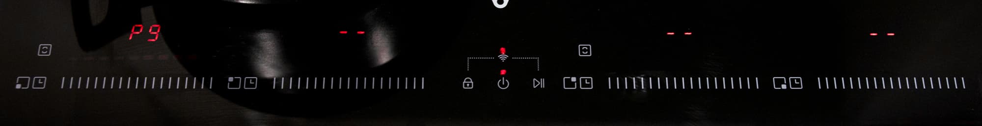 Над каждым слайдером находится индикатор, отображающий действующую мощность. По завершении приготовления вместо цифры появляется буква Н, как индикатор остаточного тепла. Как только стекло в зоне нагрева остынет, индикатор погаснет. Слева от слайдера расположена кнопка таймера. Таймер устанавливается для каждой конфорки отдельно и позволяет установить время отключения в диапазоне до 99 минут.