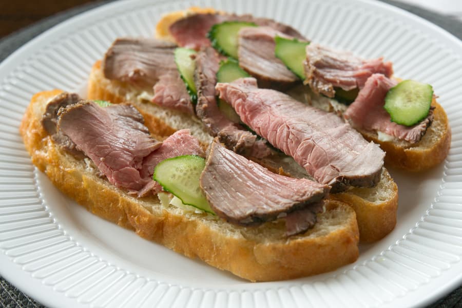 Внутрь воткнули термощуп и выставили на нем 50 °C. В середине процесса один раз перевернули кусок. После сигнала термощупа выключили духовку и оставили мясо еще ненадолго внутри.
