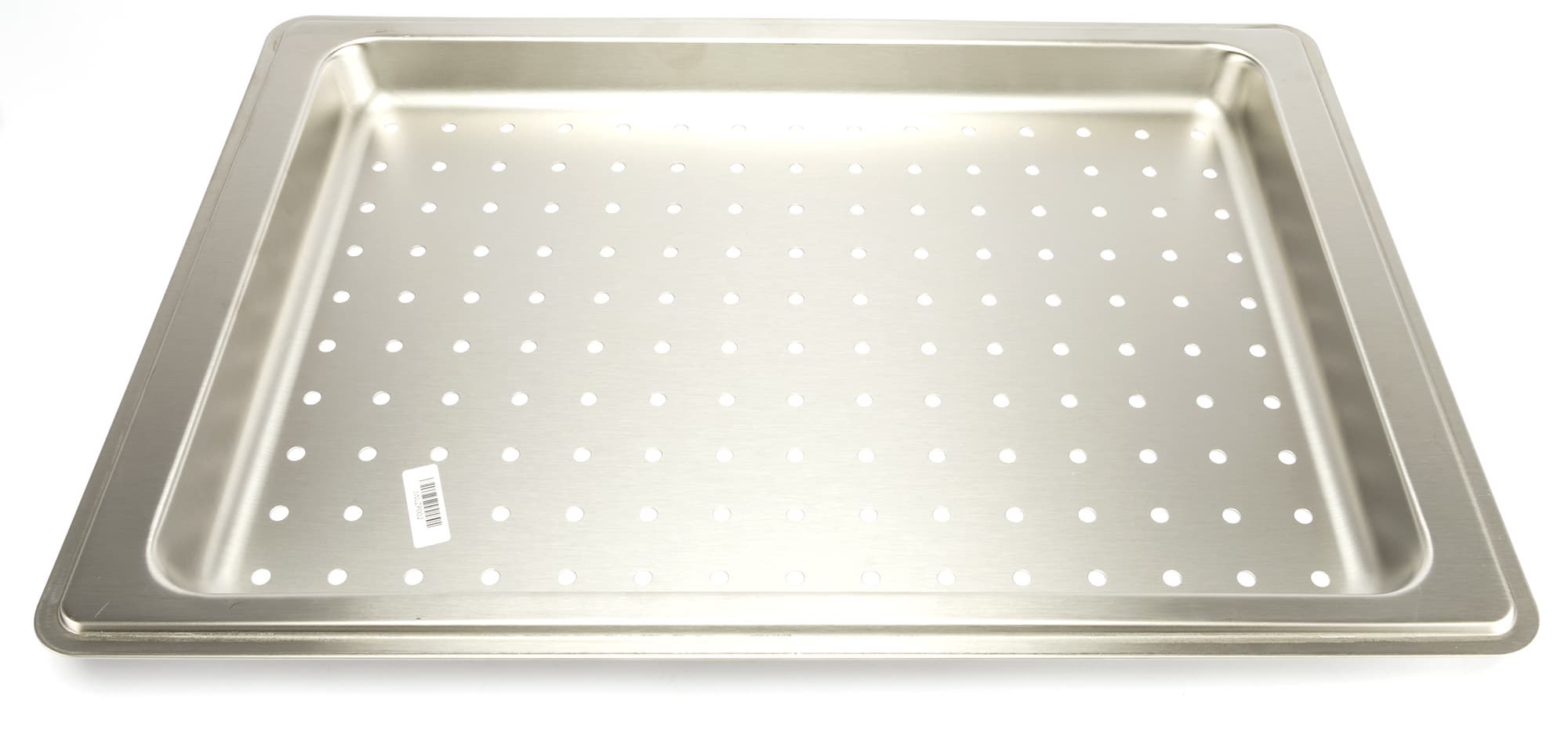 В комплект духовки входят: пара противней одинаковой глубины, один из которых имеет перфорированное дно, и решетка. Последний аксессуар не встает в направляющие сам по себе, его следует размещать на противне.