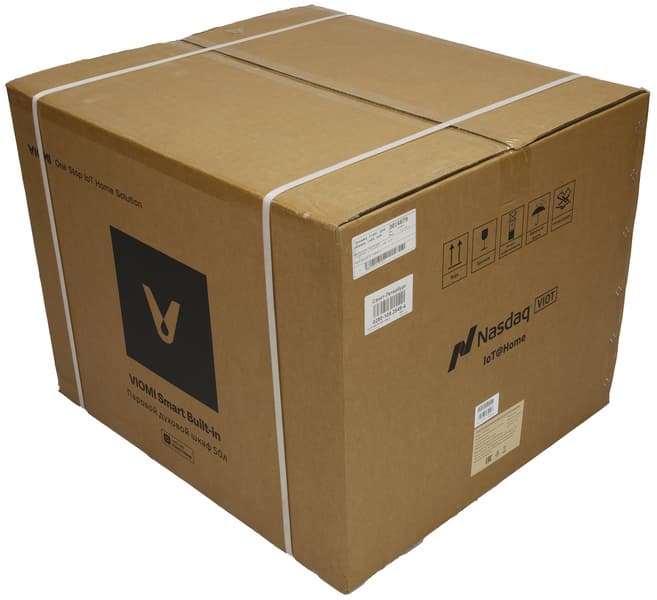 Встраиваемый духовой шкаф прибыл к нам на тестирование в коробке из прочного картона. На гранях упаковки размещены логотип компании, схематическое изображение устройства, краткая информация о модели, а также ряд транспортировочных значков.