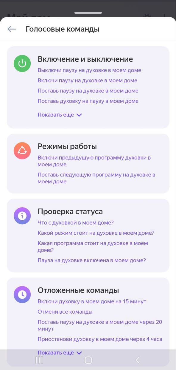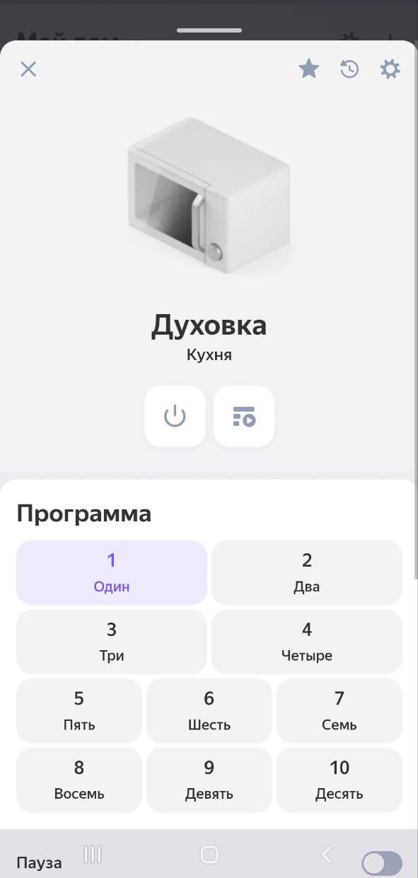 Здесь можно выбрать любой режим, произвести предварительную корректировку параметров, запустить программу, при необходимости поставить ее на паузу или прервать. В целом, все, как и на панели устройства, с той лишь разницей, что в мобильной версии гораздо больше сценариев приготовления с предустановленными настройками.