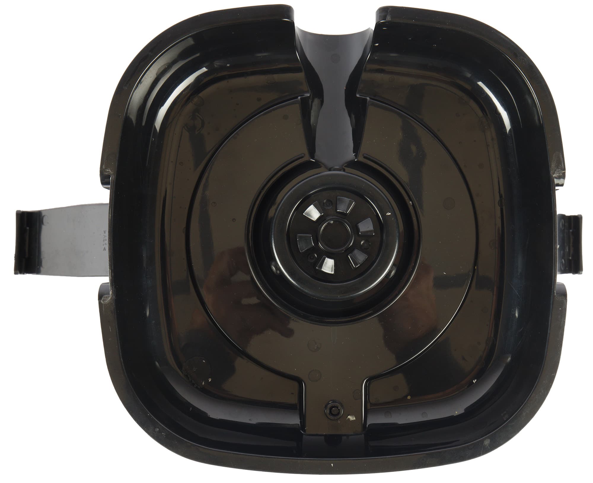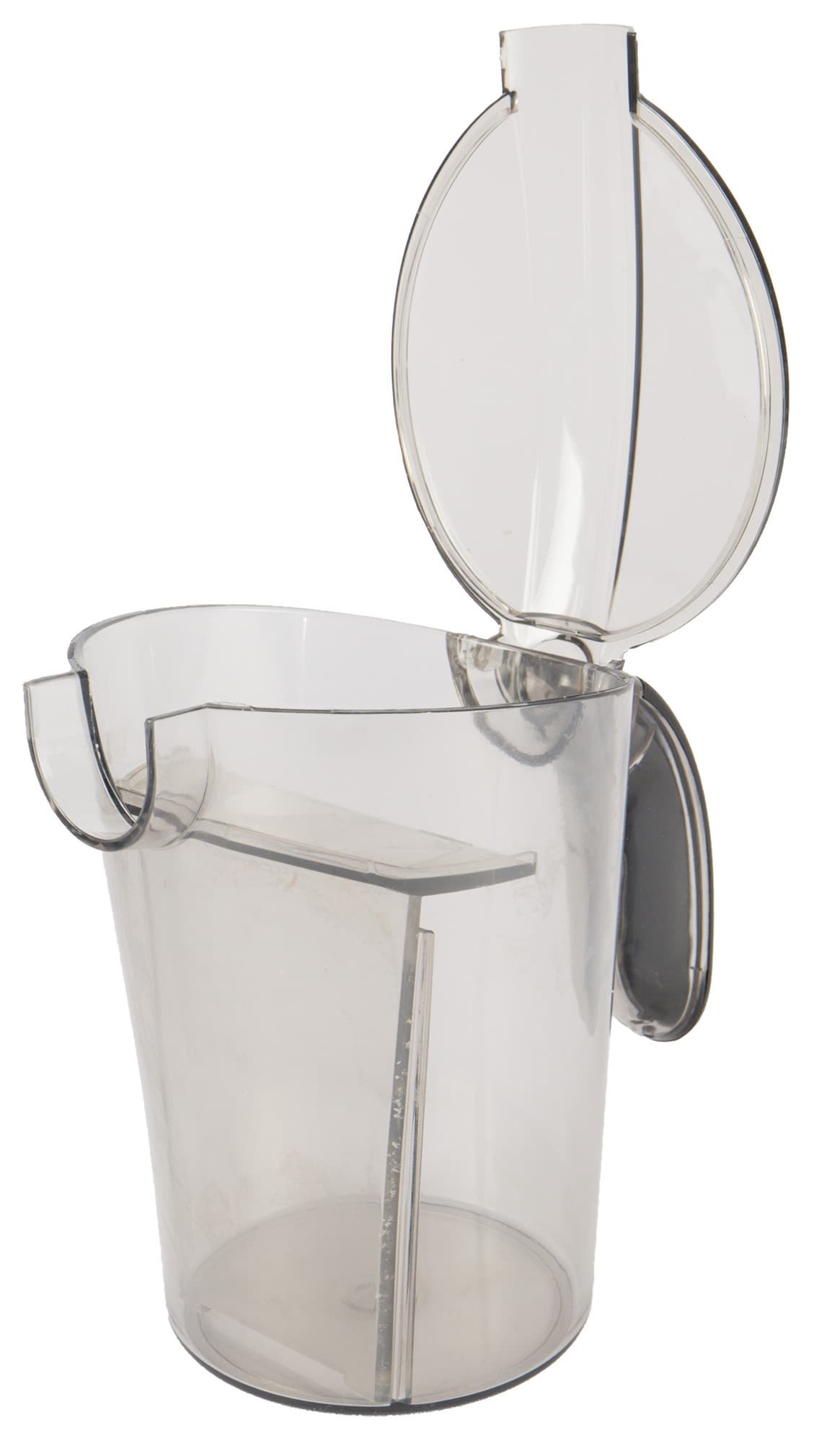 Кувшин выполнен из такого же чуть затемненного прозрачного пластика, как и контейнер для жмыха и крышка и снабжен откидывающейся крышкой и пеноотсекателем.