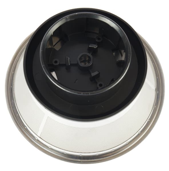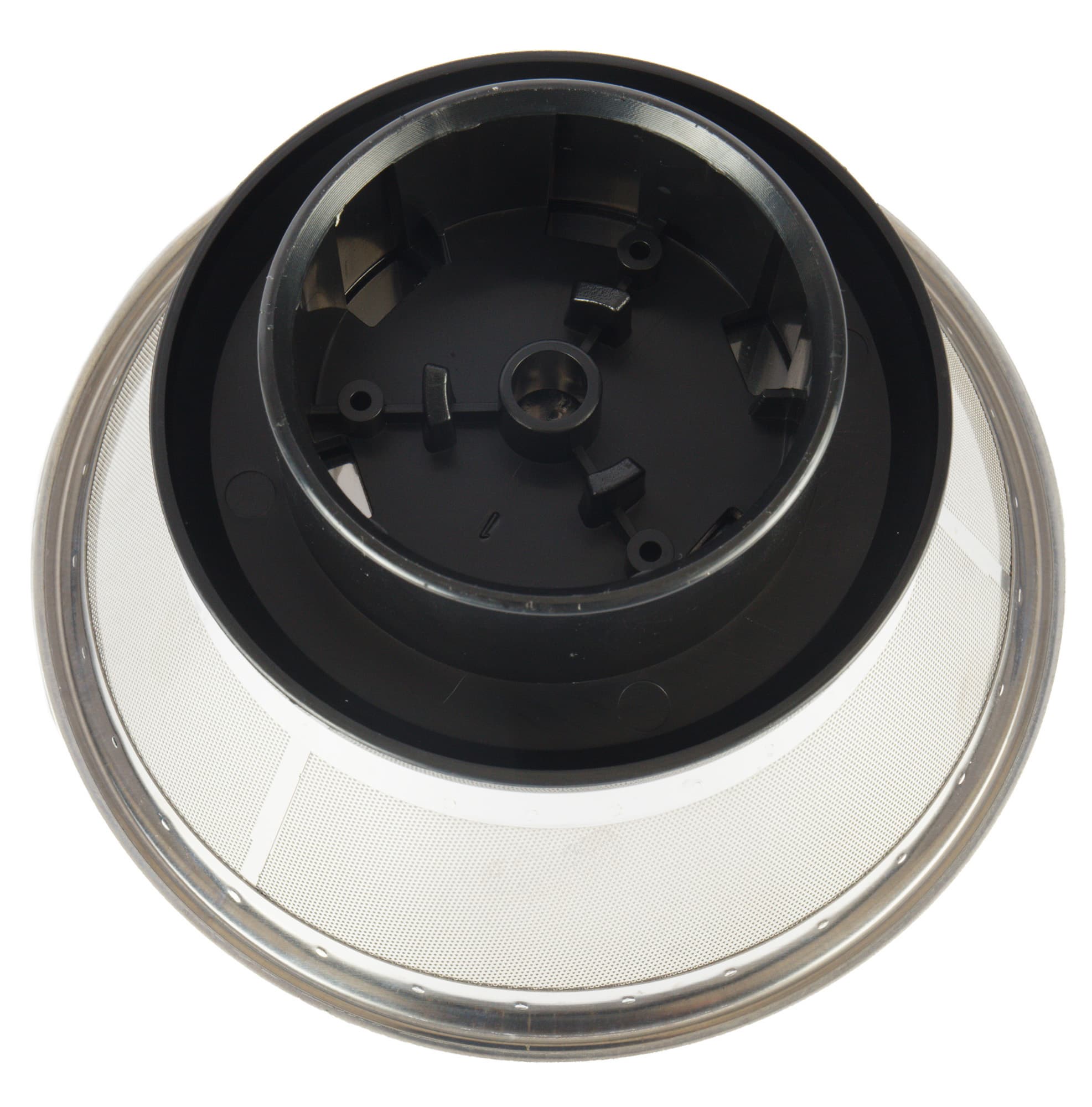 После установки контейнера для жмыха (и перед установкой крышки) следует надеть на вал отжимающую сетку с теркой.