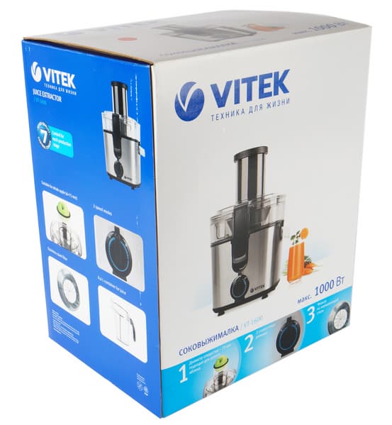 Центробежная соковыжималка Vitek VT-1600 — недорогой, аккуратно выглядящий прибор с нейтральным дизайном и довольно небольшими размерами. Со своими задачами он справляется достойно, демонстрируя результаты вполне среднестатистические.