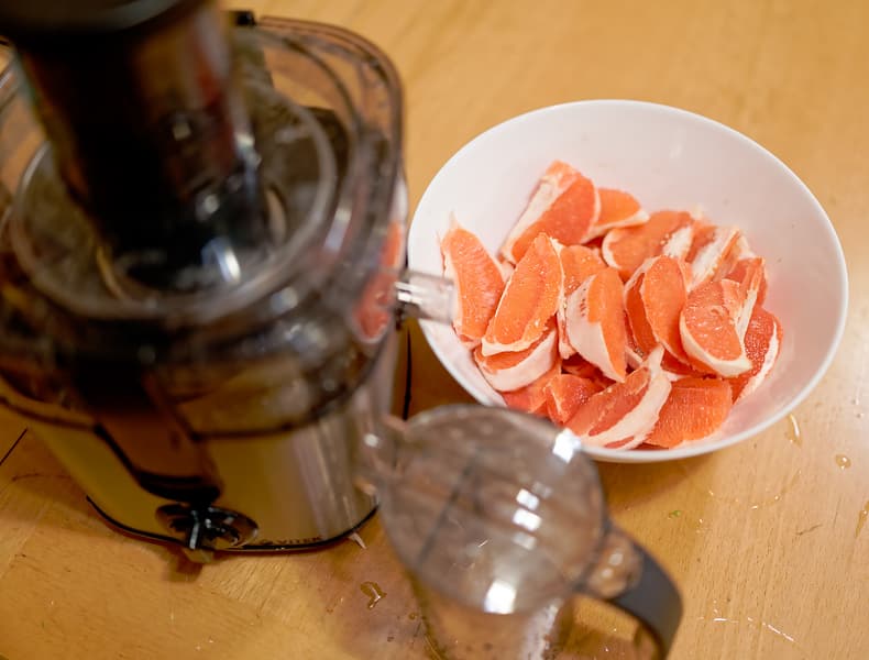 Мягкие фрукты (в том числе грейпфрут) инструкция предписывает отжимать на первой скорости. Мы решили ей не перечить.