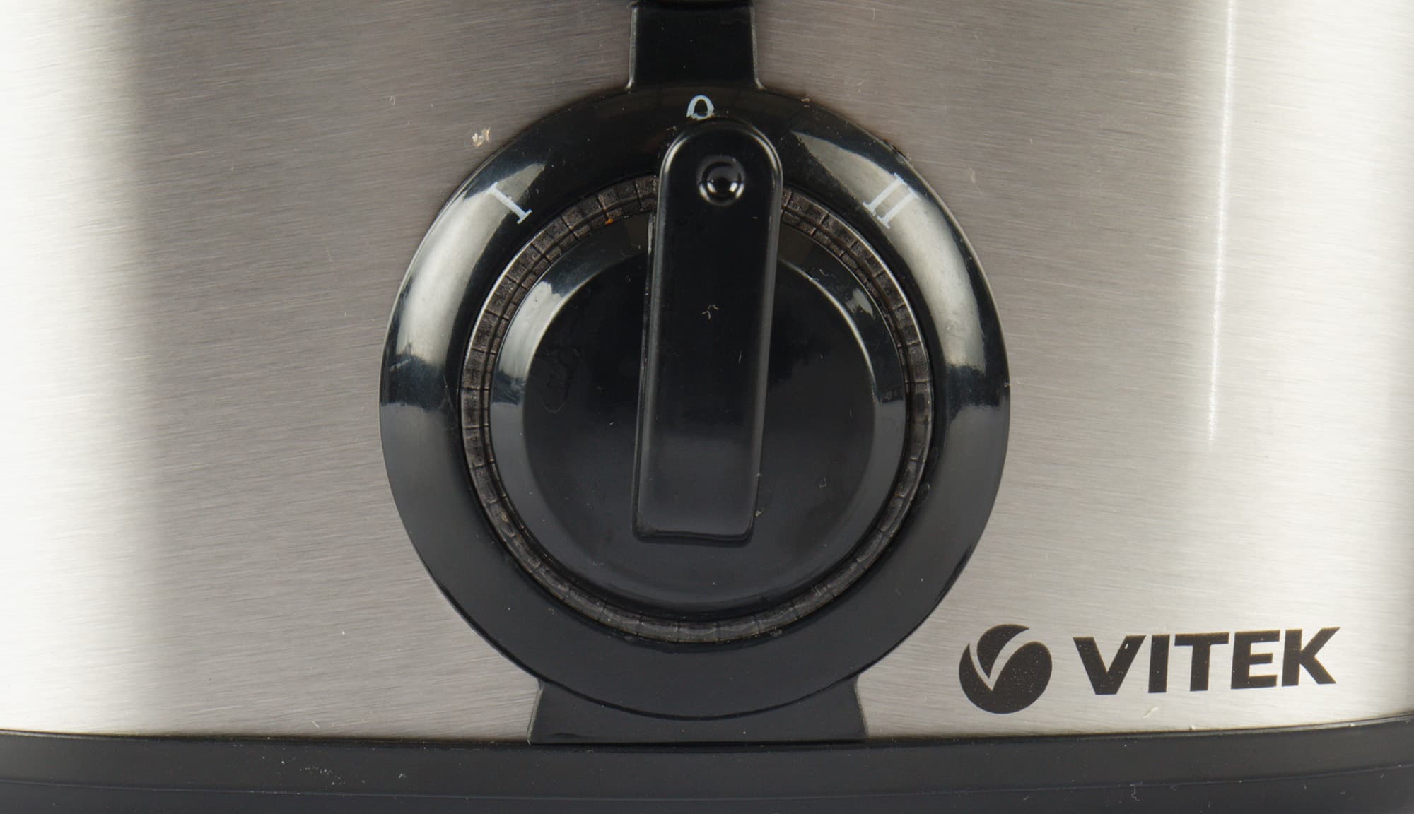 Поскольку у нашей соковыжималки предусмотрены две скорости, единственным органом управления, ожидаемо, является трехпозиционный переключатель.