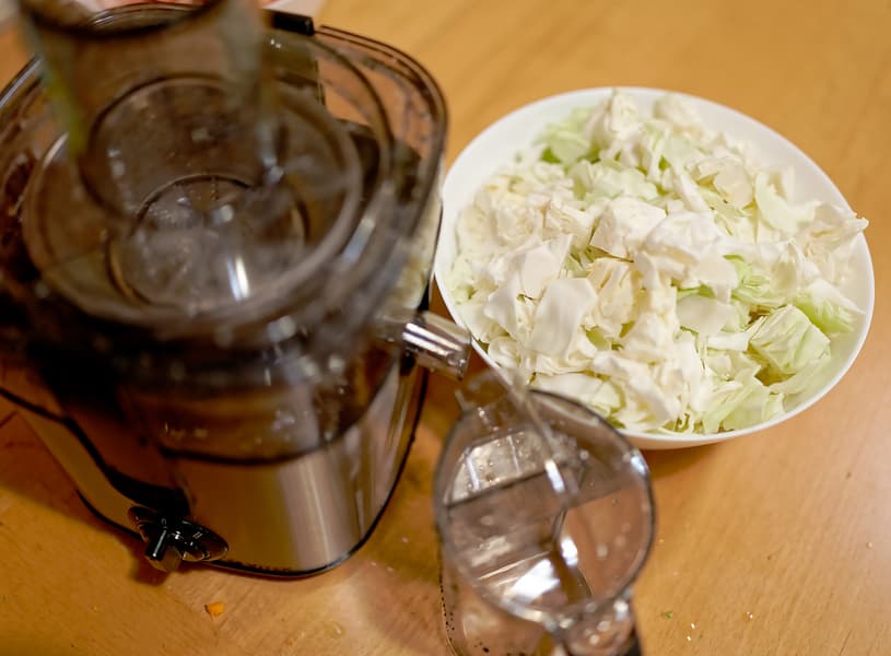 От капусты мы чудес совсем не ждали, центробежные соковыжималки этот продукт не очень любят. Но методика есть методика.