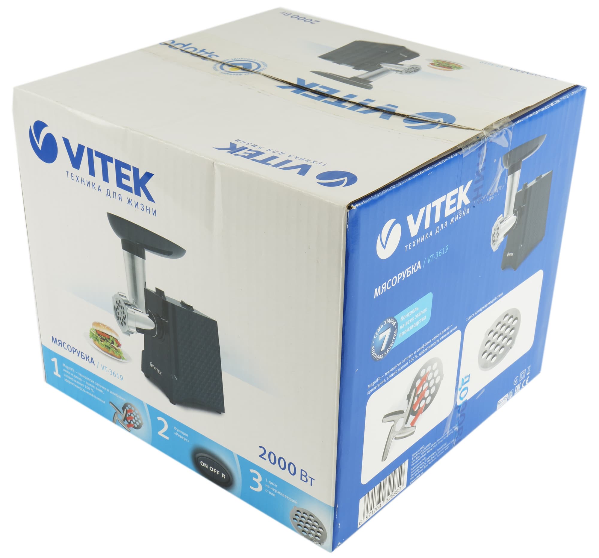 Коэффициент производительности iXBT.com для Vitek VT-3619 оказался равен 0,75 кг/мин. Результат оказался не таким плохим, как мы думали, но и сравнить его не с чем — в технических характеристиках производительность мясорубки не указана.
