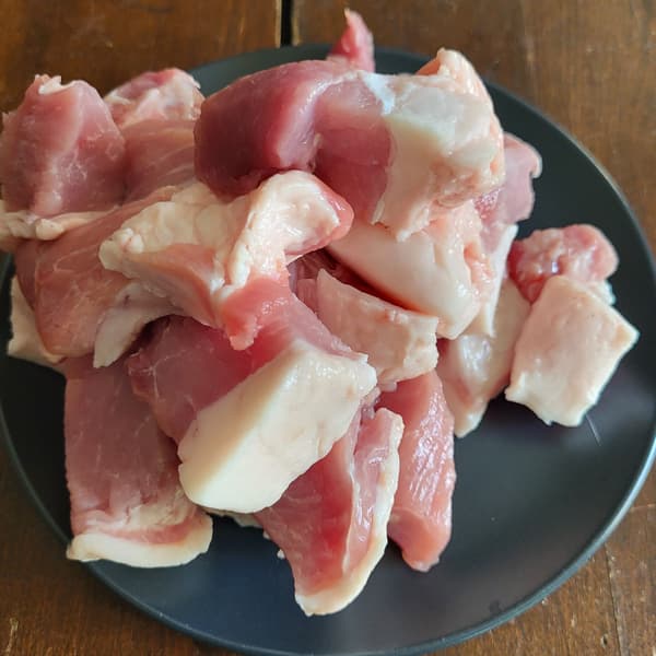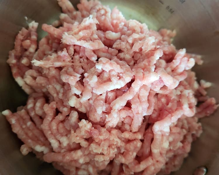 Для проведения традиционного теста мы взяли свиной окорок и единственную решетку для фарша, имеющуюся в наличии. Как обычно, мы не стали мелко резать свинину: достаточно, чтобы куски пролезали в горловину мясорубки.