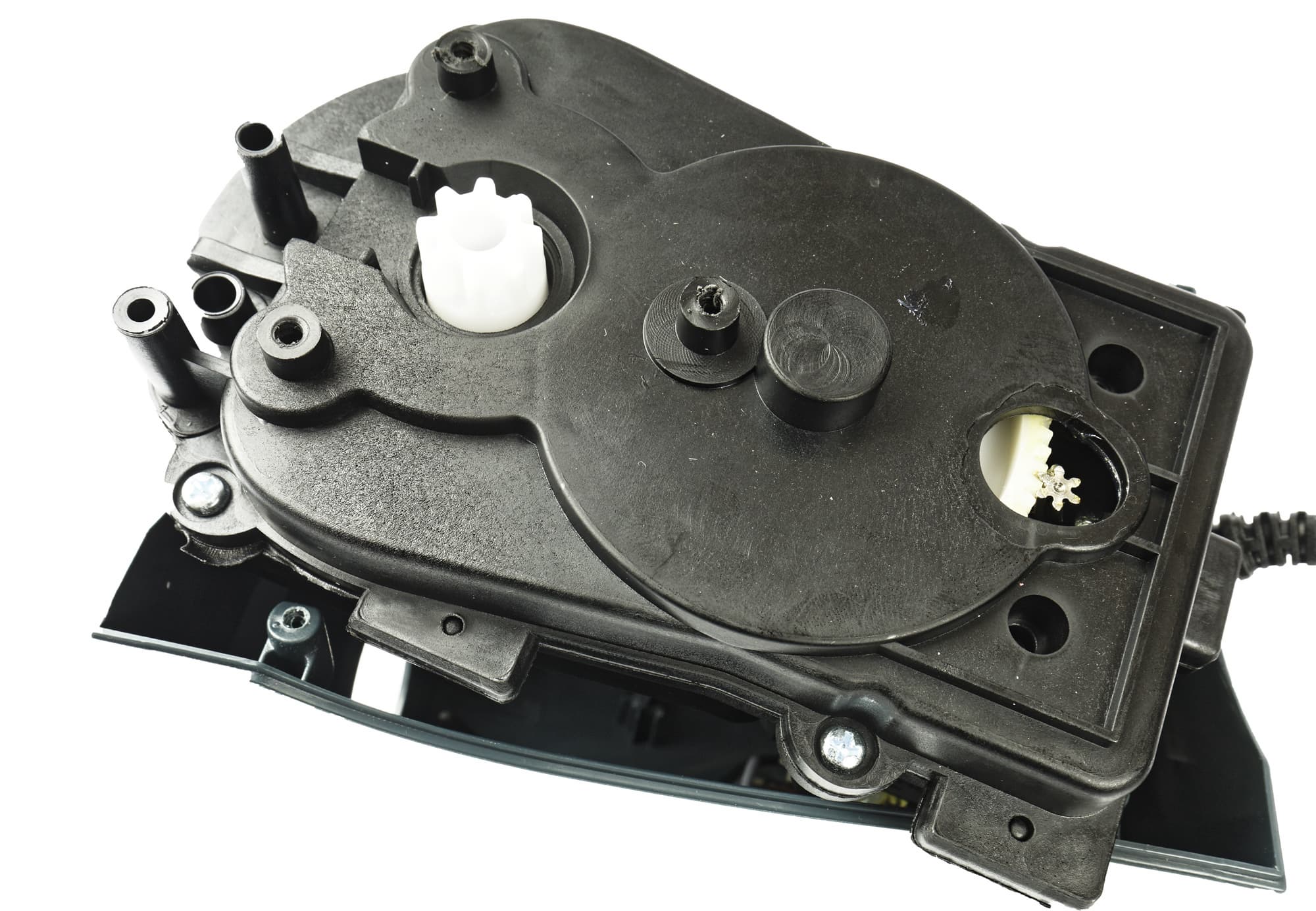 Редуктор представляет собой типовую конструкцию, но, честно говоря, мы ожидали увидеть три шестерни, а обнаружили только две: