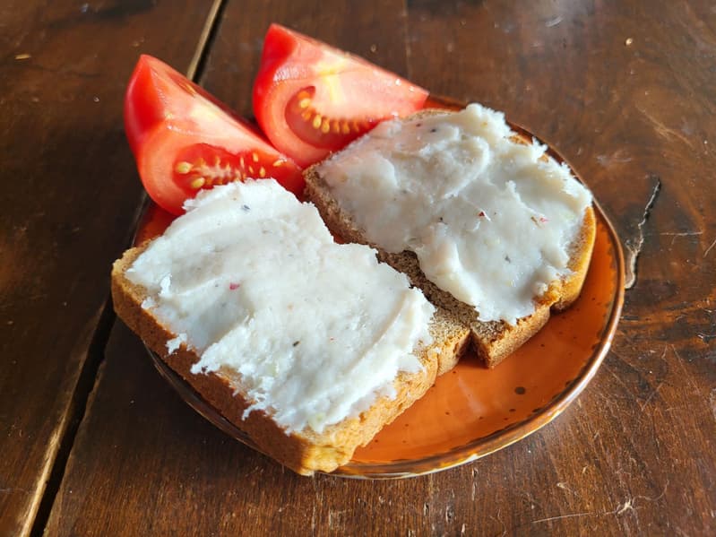 Потом добавили к салу перец (соль добавлять не стали, поскольку сало и так соленое), тщательно всё перемешали и съели с хлебом и сладким чаем. Стоит отметить, конечно, что такое сало, намазанное на хлеб, еще и прекрасная закуска.