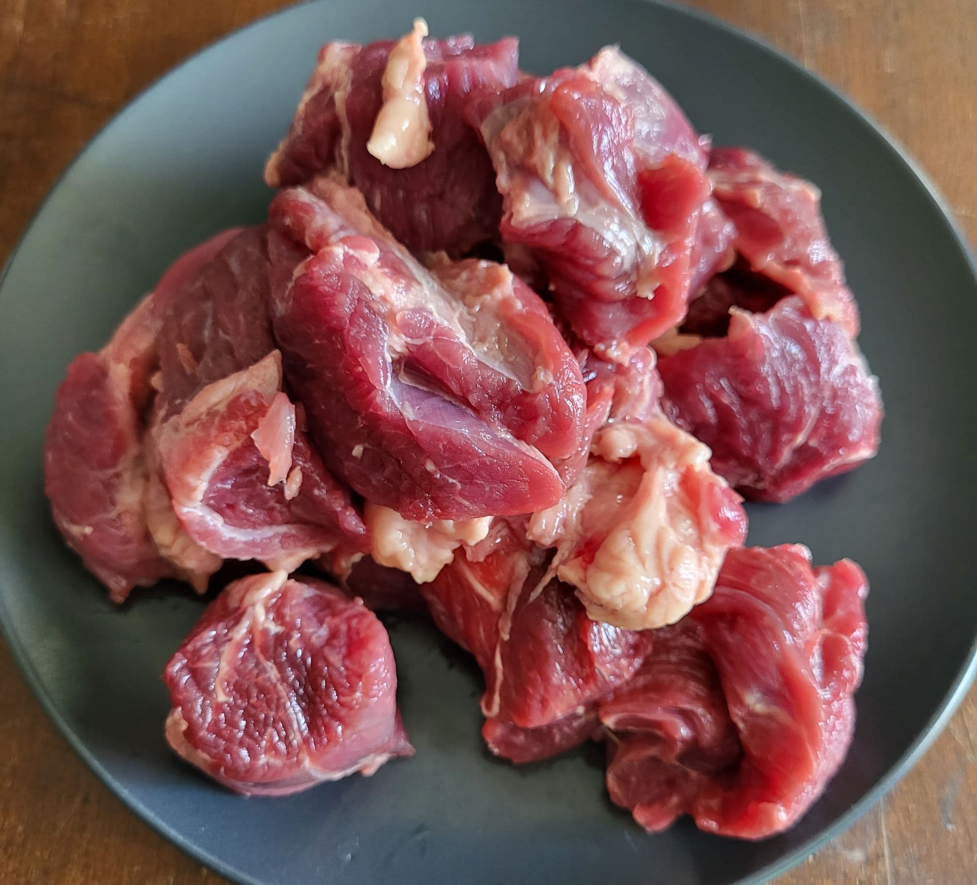 Следующим этапом мы решили проверить, как мясорубка справится с говядиной, которую мы тоже порезали довольно крупными кусками, не вырезая из мяса жил.