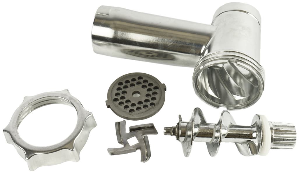 В комплект входит лишь одна решетка для фарша, что вызывает некоторое удивление: современные мясорубки обычно снабжаются максимально возможным набором насадок и аксессуаров.