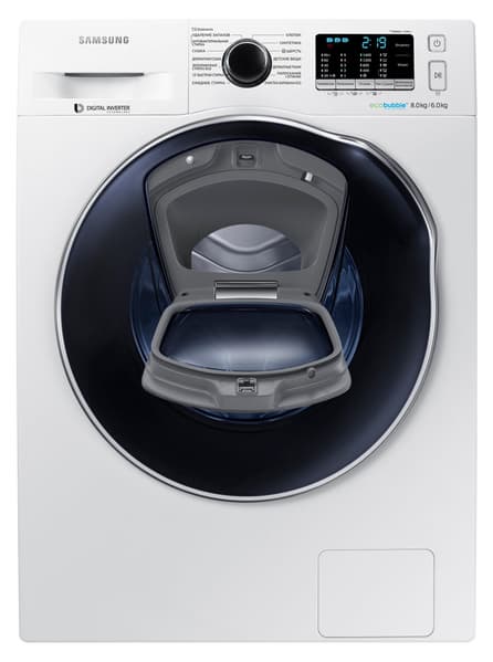 Впрочем, справедливости ради стоит отметить, что стиральные машины с фронтальной загрузкой, допускающие добавление чего-нибудь в бак в процессе стирки, всё-таки есть. Их довольно недавно начала выпускать компания Samsung, в её терминологии это называется функцией «AddWash». Реализована она довольно просто.