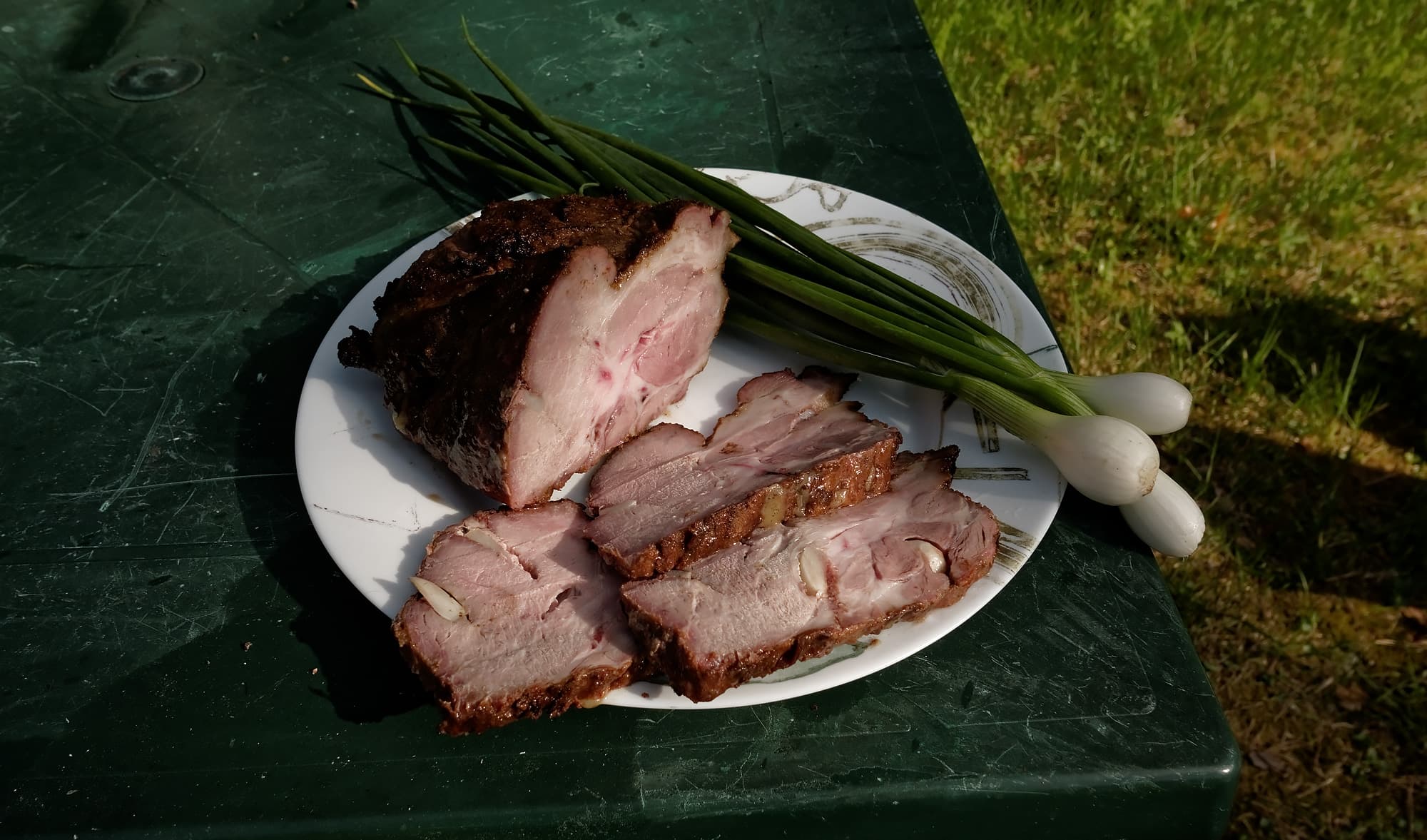 Примерно за сорок минут мы получили идеальное копченое мясо свиной грудинки.