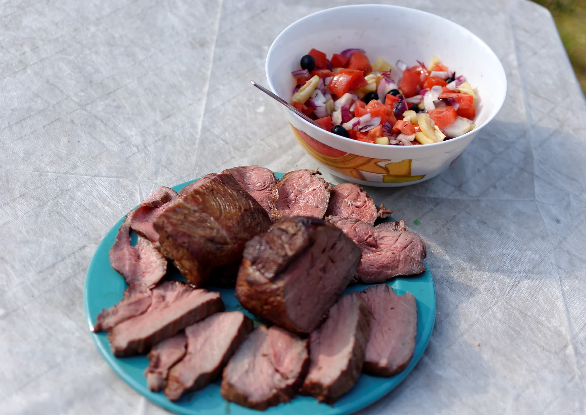 Мы не ставили перед собой сложных кулинарных задач и сосредоточились на том, что было бы очень сложно без iGrill и стало совсем легко с применением электронного термометра. В блюдах, где достаточно одного щупа (например, цыпленок или кусок свиного окорока), мы использовали iGrill Mini, а при приготовлении двух кусков одновременно (например, порционные куски свиной корейки, ростбифов и рулетов из ягнятины) — iGrill 2 с двумя щупами.