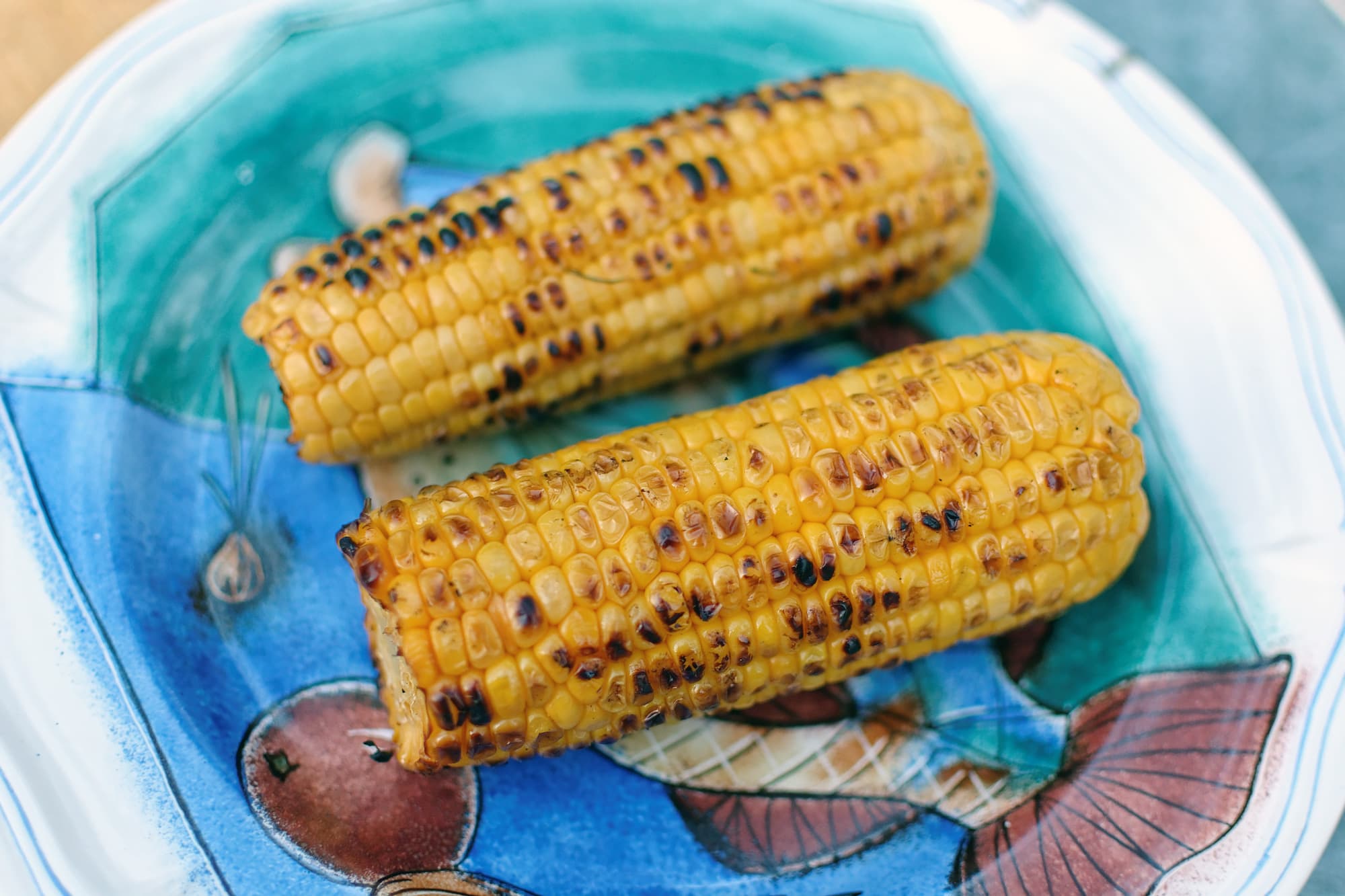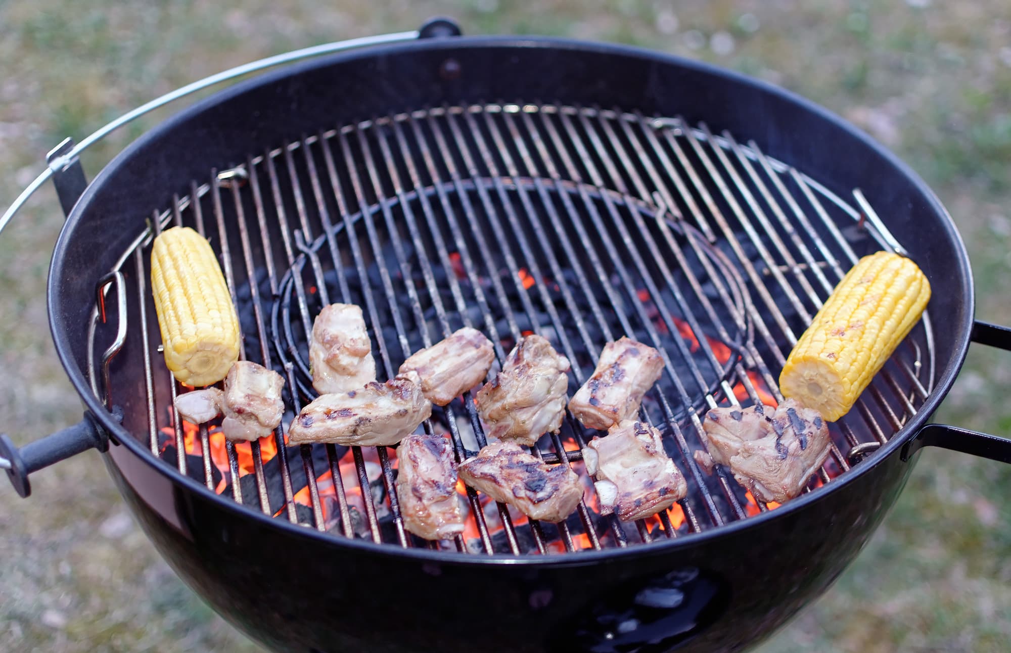 Быстро обжарили на горячих углях прямым методом, добавив для компании пару початков кукурузы.