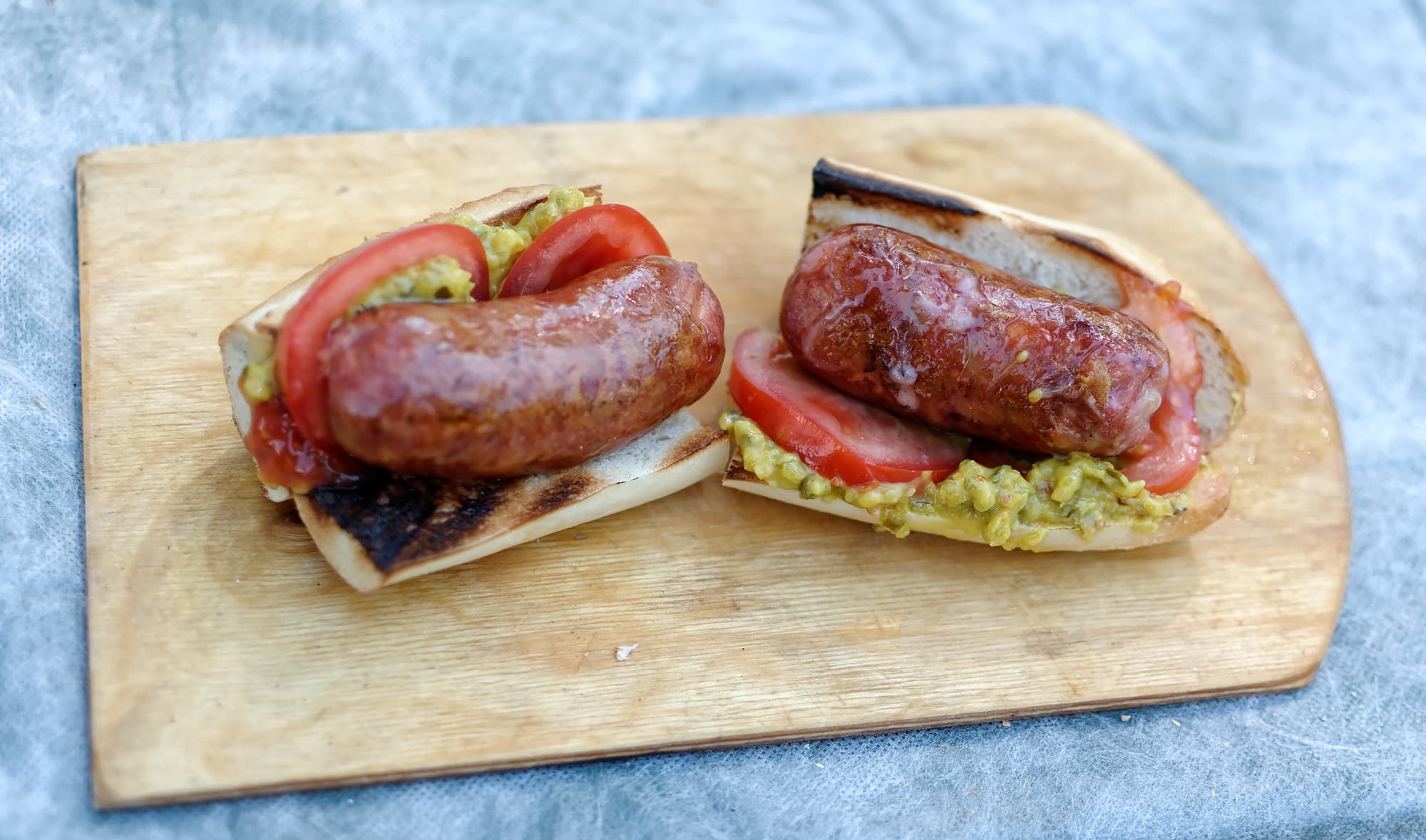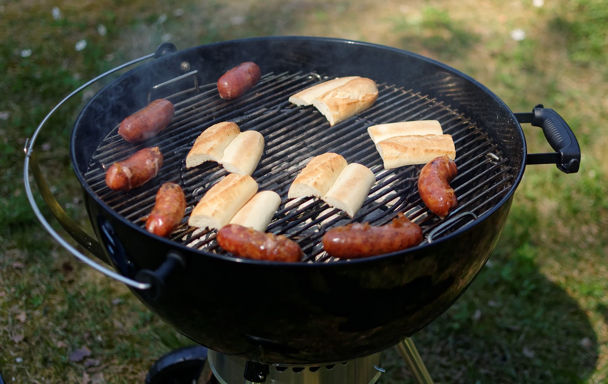 Фермерские колбаски и нарезанный багет поджарили на углях. Открытым способом, без крышки, наш Weber тоже оказался трудоспособен и готов к рок-н-роллу: угли не гасли, процесс оказался мгновенным.