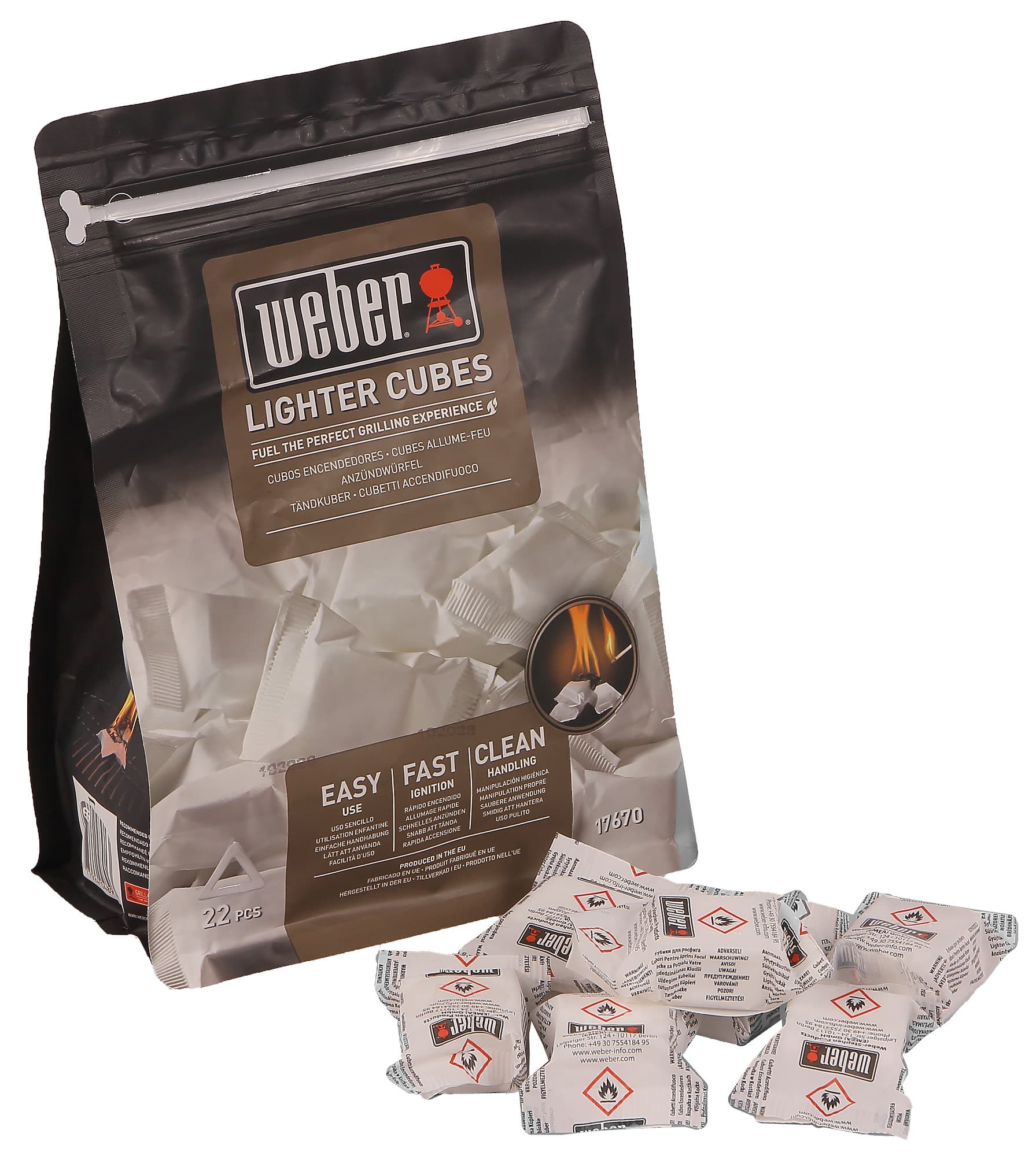 К расходникам можно отнести и парафиновые кубики для розжига. Сайт Weber еще предлагает «натуральные» кубики из вторично переработанной древесины (своего рода древесной макулатуры), пропитанные чем-то вроде жидкого парафина.
