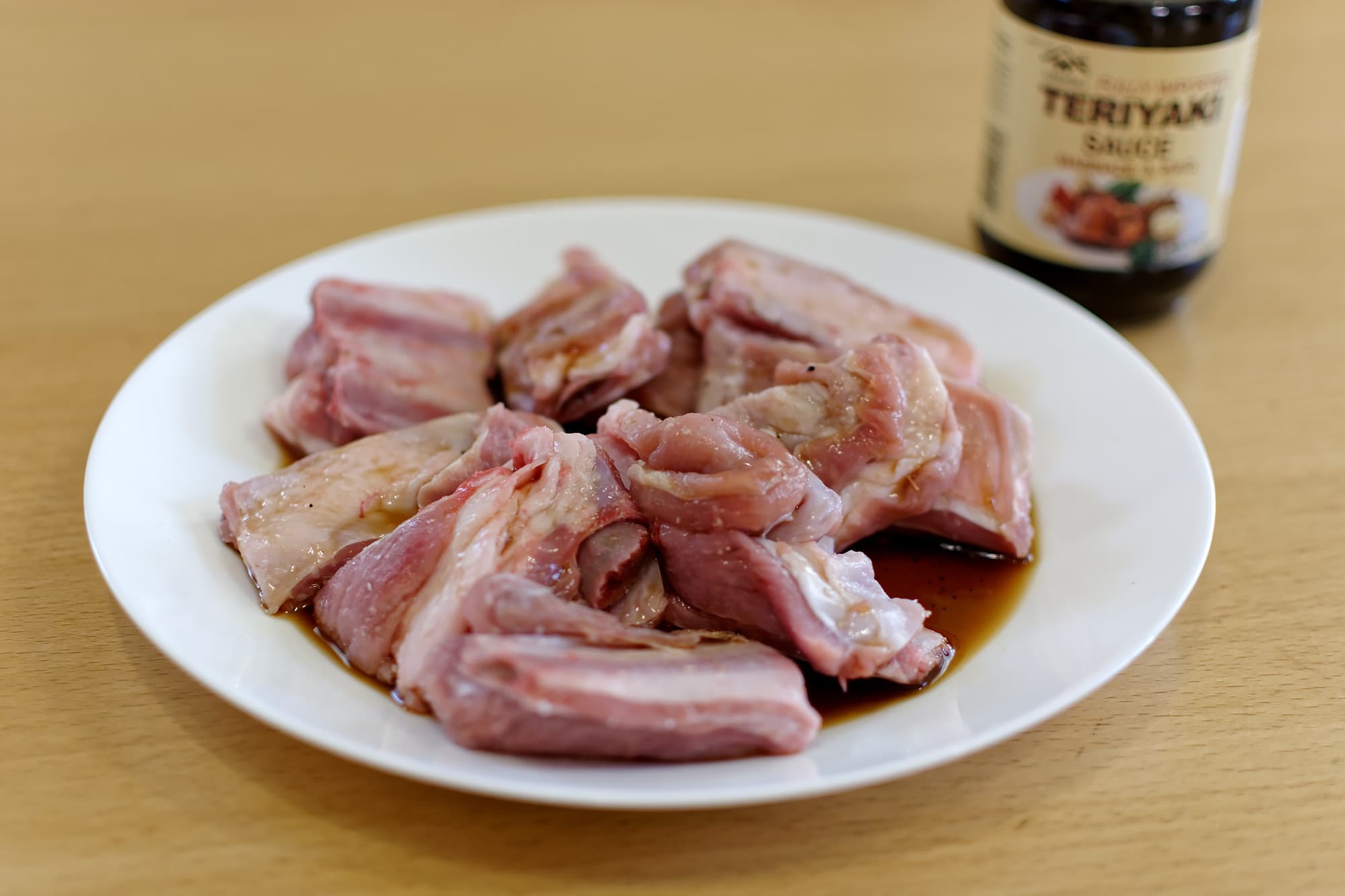 Посолили и замариновали в соусе терияки с добавлением ложки горчицы и ложки меда. Три часа готовили в су-виде до достижения температуры в 54 градуса.