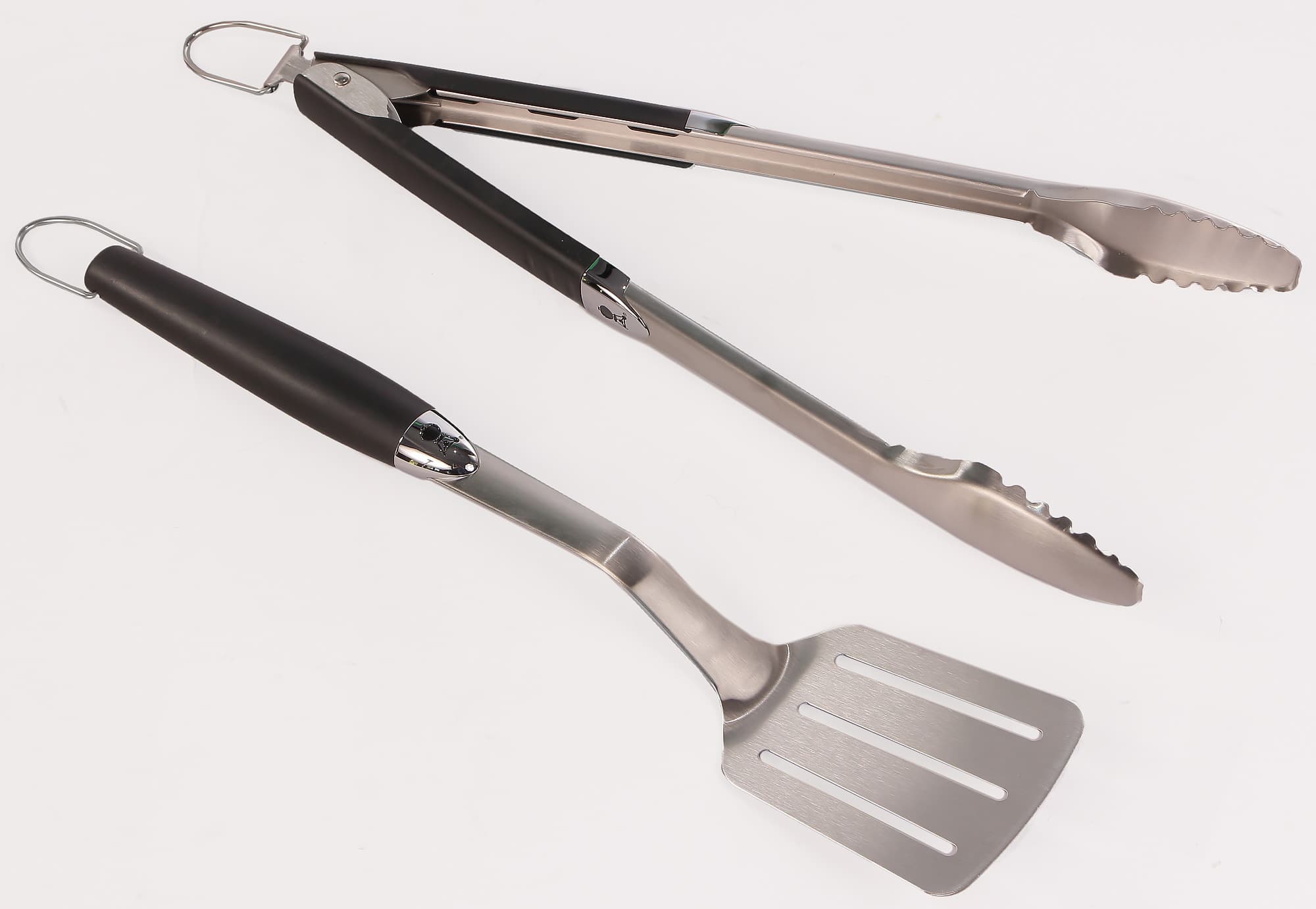 На инструментах есть петли, позволяющие повесить их на специальные отвесы, расположенные по бокам ручек гриля.