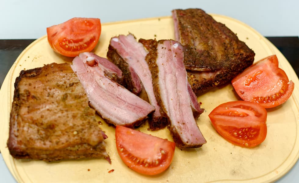 - Свиная грудинка горячего копчения