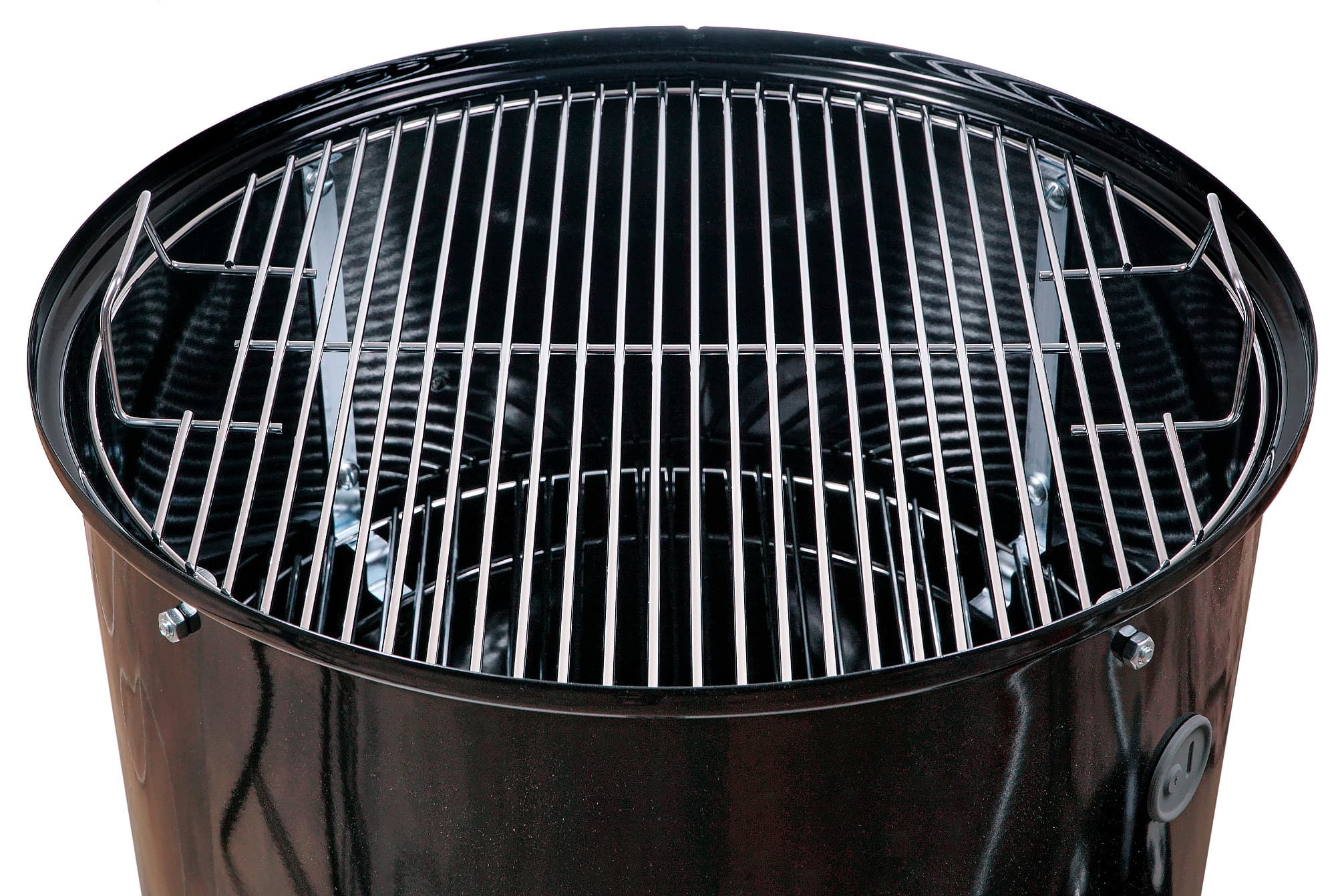 Ну и далее, в два яруса — решетки для копчения, на которые будут укладываться продукты. Логично, что температура на нижней решетке чуть повыше, на верхней — чуть пониже. Также нижняя решетка чуть меньше в диаметре.