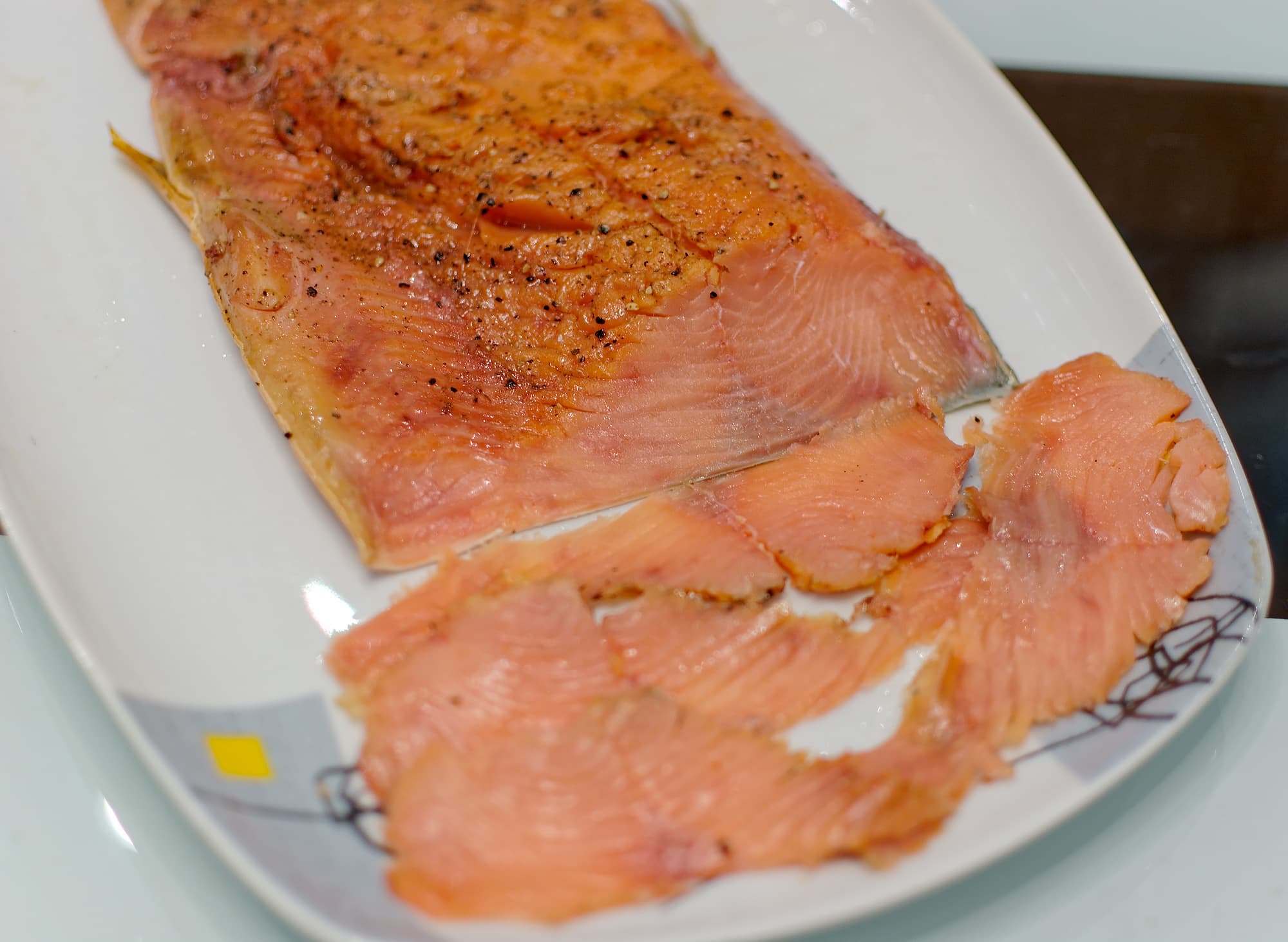 Копчение шло 12 часов, оба вида рыбы прокоптились полностью, отлично нарезались и вкус имели превосходный.