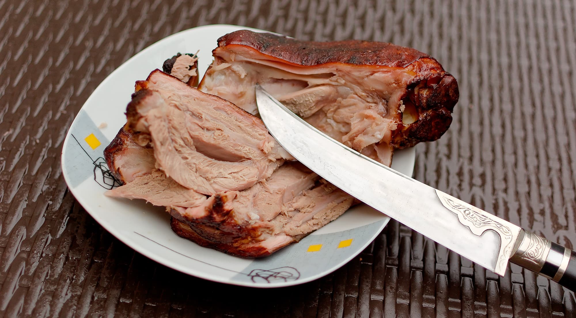 - Бараний окорок горячего копчения