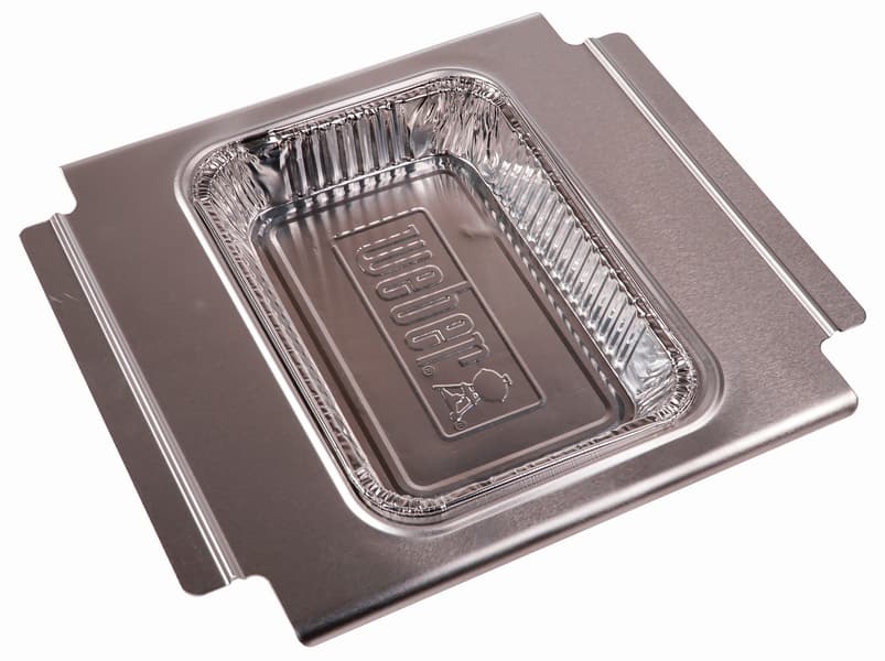 Сок и жир, не успевшие испариться на пластинах, капают дальше, на дно котла конической формы, заканчивающееся отверстием. Под отверстием расположен держатель для одноразового подноса. Сам котел литой, то есть является единым целым. По утверждениям Weber, это делает его намного надежнее, и к тому же такая конструкция лучше сохраняет тепло.