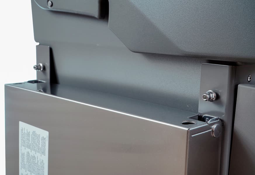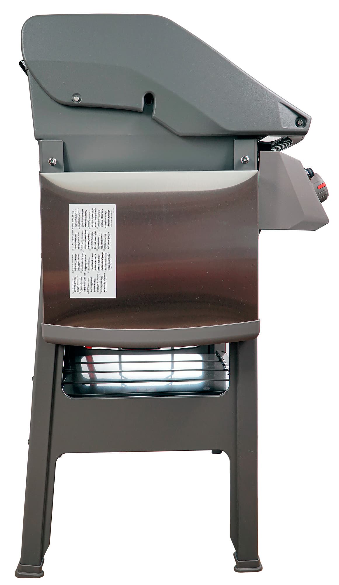 Если необходимо «втиснуть» гриль в какое-то узкое место, предусмотрена возможность пожертвовать левым столиком, он складывается.