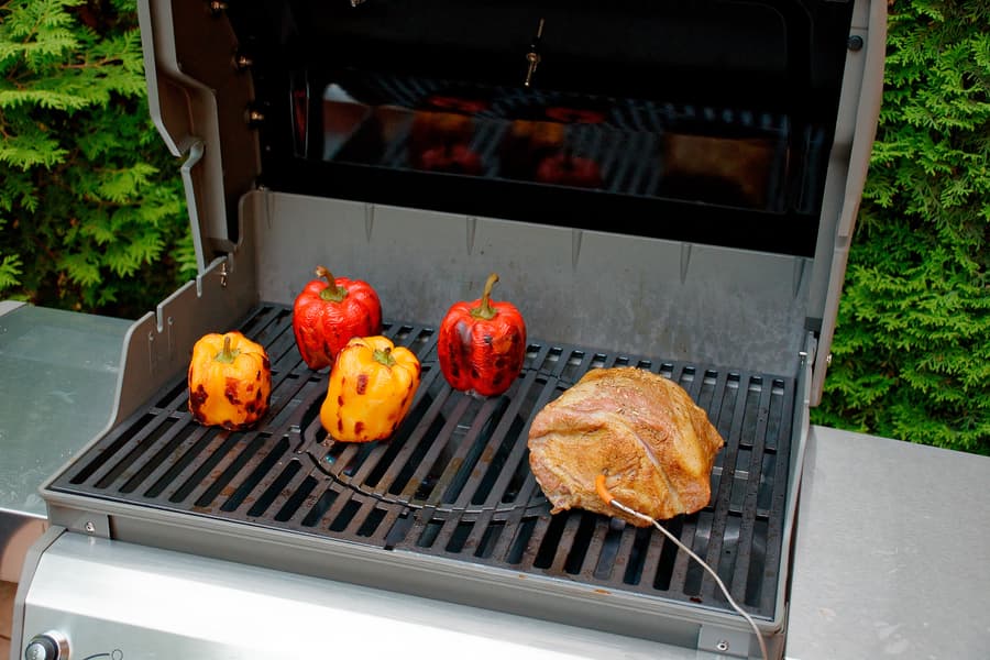 Параллельно со свининой мы запекли обыкновенные болгарские перцы в зоне прямого жара.
