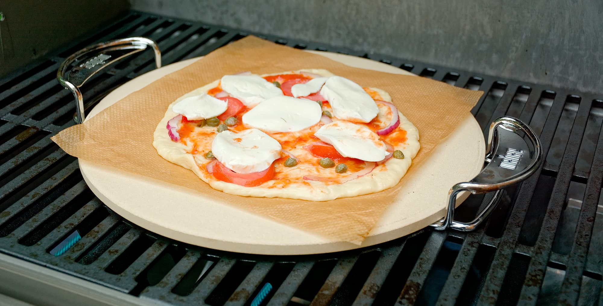 Инсталлировали камень для пиццы и нагрели гриль до 250 градусов.