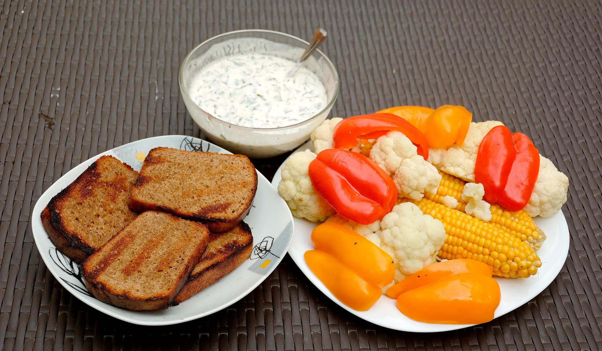 Овощи снимали аль-денте, не давая им развариться, макали в соус из кефира, сметаны, чеснока и зелени, и уминали вприкуску с горячим хрустящим хлебом. Не мясом единым!